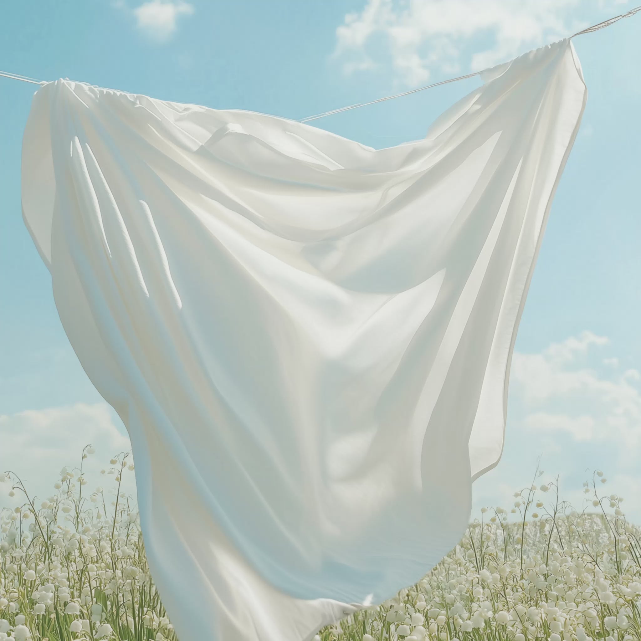 Sun dried cotton combined with green notes, white flowers and a hint of lemon.